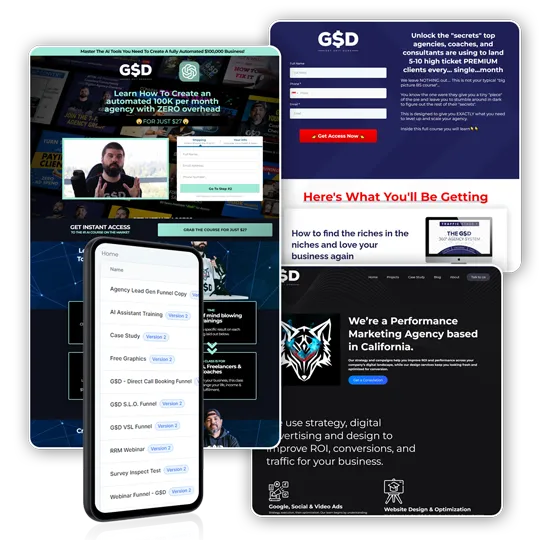 Lifetime access to the G$D's Funnel Club If all of that isn't enough you also get every single funnel, website and snapshot available in our G$D store (joingsd.com/store) dripped out to you once every two weeks through our funnel club, totalling over 3 dozen beautifully designed assets.